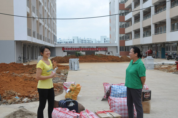 校领导在搬迁现场办公