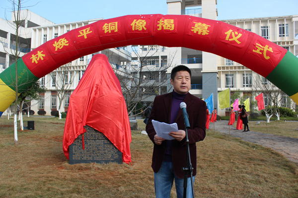 林焕平的长子林石在他的讲话中追述了他父亲的生平事迹,感谢大家对林焕平铜像的大力支持,他祝福我校在新的起点上,继往开来,桃李满天下。