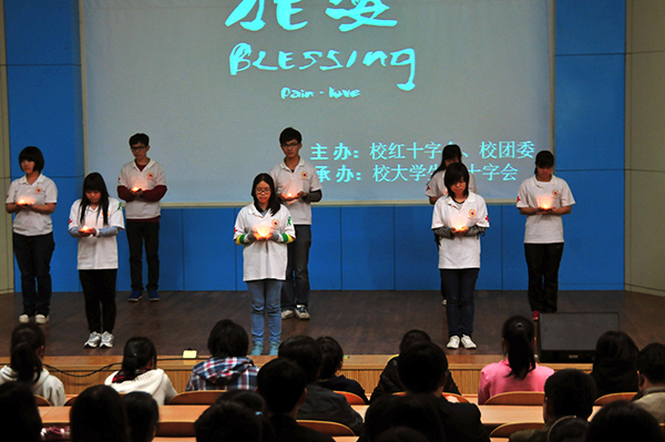4月23日下午,校大学生红十字会、校团委联合主办的“心系雅安,爱献灾区”祈福募捐统一活动在育才校区大学生学术报告厅举行。校团委、校医院领导以及各学院分团委书记出席了本次祈福募捐活动。