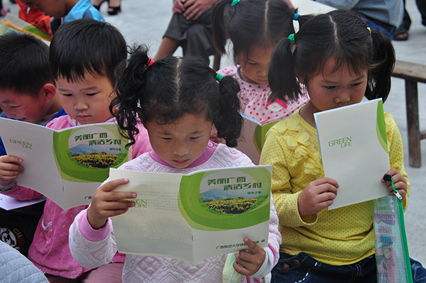当前,广西正在深入开展“美丽广西 清洁乡村”活动,5月30日,宣传部党支部特意编写印制了精美简介的《美丽广西 清洁乡村》的宣传册,并发放到每一位教师和学生手中,向大家宣传如何从日常小事做起,为实现清洁乡村,构建美丽广西做出力所能及的贡献。“太好了,这下我知道该如何处理平时手中的垃圾了。”一位四年级的同学高兴地说。“今后我和同学们会像册子上介绍的一样,一起做好清洁卫生,共同维护学校的环境。”五年级1班的班长兴奋地告诉我们。六一儿童节即将到来,宣传部党支部为文洞完小的200多名学生们带去了图书、文具和体育用品等节日礼物。在接受礼物的过程中,小学生们表现得既兴奋激动又礼貌有序,学生代表还特意为支部成员每人戴上了一条鲜艳的红领巾。