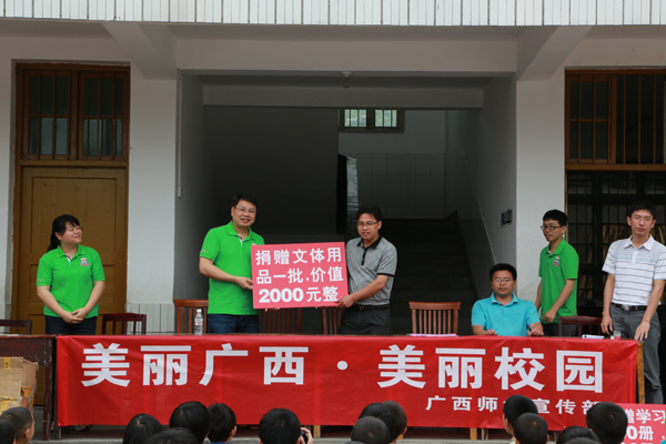 “美丽广西 清洁乡村 美丽校园”,六一节前夕,校党委宣传部党支部8名党员代表前往资源县文洞村文洞完小,开展了“美丽广西 清洁乡村“的宣传活动,并为乡村孩童带去图书文具等节日礼物。
