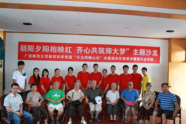 据了解,“小太阳暖心社”是教育科学学院发挥专业的社会效应和优势,倾力打造的校园文化公益牌品之一,将联合学校各职能部门,发动团支部、党支部及学生干部等力量,力求将关爱退休空巢教师的活动长期化、制度化和科学化,为实现“美丽师大梦”奉献力量。