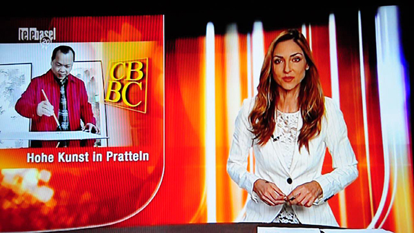 画展开幕式前,白晓军教授接受了巴塞尔电视台新闻节目的专访。在节目中,白晓军介绍了中国山水画的发展渊源、艺术语言和表现方式,以及现当代中国山水画的演变和发展情况,还介绍了中国画家艺术创作的状态。
