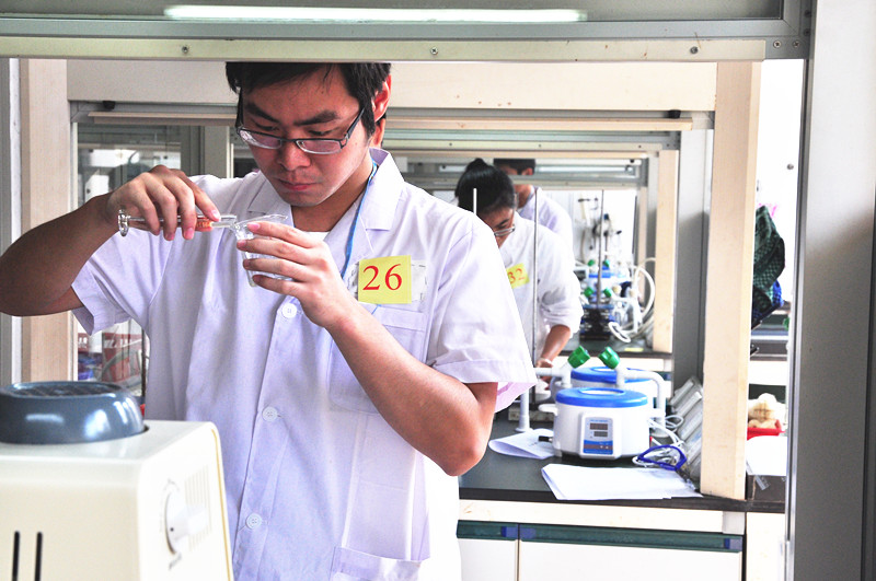 本次竞赛分为实验理论笔试和实验技能测试两个环节。参赛选手每人竞赛总分为100分,笔试占30分、实验技能占70分。笔试时间为2小时,内容涵盖基础化学实验中与无机化学、有机化学、分析化学等相关知识。实验技能测试时间为7小时,包括无机分析实验和有机化学实验2个实验项目。经过两天的角逐,广西民族大学陈水保等8人获得本科组一等奖,广西职业技术学院吴豪霞等6人获得高职高专组一等奖,我校选手颜志明等4人获得本届竞赛优胜奖,另有18人获得二等奖,22人获得三等奖,9名教师获评本届竞赛优秀指导老师。