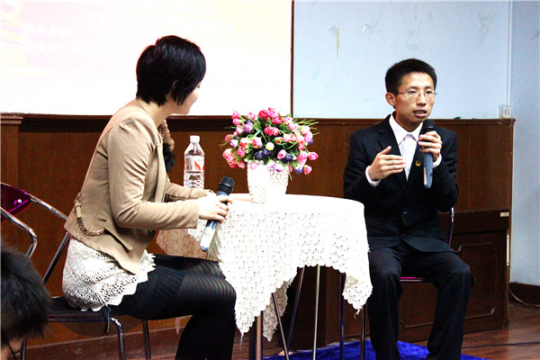 白松涛导师用“偶然当中,必有必然”来表达他的感受。同时,他也给我们提出了一些建议:对于专业与爱好的取舍,坚持自己的爱好,有一天总能把它实践出来;关于学术竞赛,发明创作就在我们身边,做生活中的的有心人,做学习的有心人,你会发现很多东西;关于学习靠智商还是情商问题,要相信天生我才必有用,要学会笨鸟先飞。最后白书记还用自己总结的三点关于奋斗和梦想的关系与大家共勉。第一是要胸怀梦想,有了梦想才会去奋斗,才有动力去奋斗、同时要把自己的梦想和中国梦结合在一起,这样自己的梦想才会实现得更好;第二是脚踏实地,千里之行始于足下,任何成功都是一步一步积累起来的;第三是要善于学习,大学四年要对得起自己,对得起自己的父母,对得起我们的老师和我们的学校,要坚持学习,勤奋学习,努力学习。