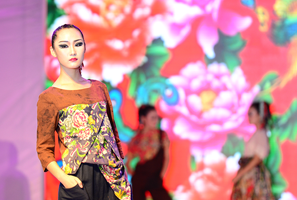 服装设计与表演具有极强的青春、时尚气质。同学们脱去青涩的外衣,披上华裳,万众瞩目的T台秀正式开始,发布会进入高潮。当晚的服装设计作品全部由我校服装设计与表演专业的同学们进行设计和展示,灯光璀璨的舞台上,模特们身着各色服装依次亮相。融合了吉普赛风格,以牡丹样式的东北大花布为主要面料的《漂泊》艳丽夺目,凸显出少女的美丽不羁与感性浪漫;多变的几何图形、绚丽的色彩,理性与感性的碰撞,2011级优秀设计作品《迷失》带领观众们走进一个唯美奇幻的梦境;作品《墨·言》继承了汉服文化传统,古色古香、优雅大气;作品中还出现了城市建筑、桂花、中国风、复古文艺、时尚流行等元素,流光溢彩,让人目不暇接。
