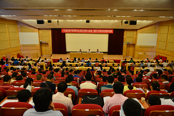 6月21日—6月28日,由广西教育厅组织实施、广西高等学校师资培训中心负责日常管理的广西高校青年教师教学业务能力提升计划2014年第一期第三批集中培训在我校进行,来自全区各高校的374名青年教师将参加为期一年的培训。