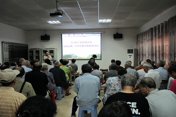 唐仁郭副书记首先通报了一年来学校在教学质量、人才培养、科学研究、管理服务等方面取得的可喜成绩,对台胞台属、归侨侨眷长期以来对学校各项事业的关注和支持表示感谢。他同时指出:今后一个时期是学校内涵式发展的关键阶段,面对新形势、新任务、新要求,需要包括台胞台属、归侨侨眷在内的全校师生的共同努力,希望台胞台属、归侨侨眷能一如既往地发挥联系广泛的优势,以乡情、亲情、友情为纽带,把爱校之情转化为兴校之举,为学校早日实现有特色高水平一流大学目标献计献策。同时,也热情欢迎、热切期待更多的海外侨胞、港澳同胞、台湾同胞和各界人士关心和支持广西师范大学的发展。