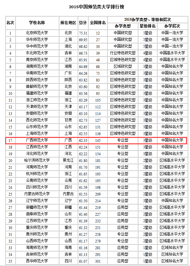 2015中国师范类大学排行榜http://www.cuaa.net/cur/2015/31.shtml