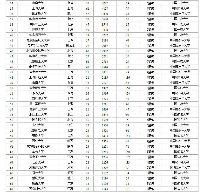 中国星级大学排行榜 http://www.cuaa.net/cur/2015/14