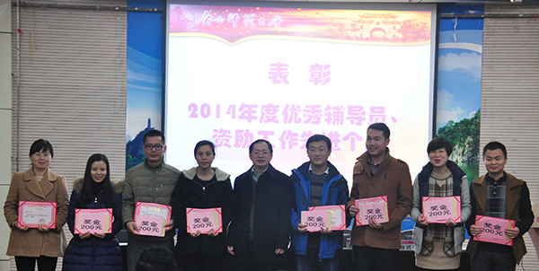 大会表彰了10名“广西师范大学2014年度优秀辅导员”和21名“广西师范大学2014年度资助工作先进个人”。