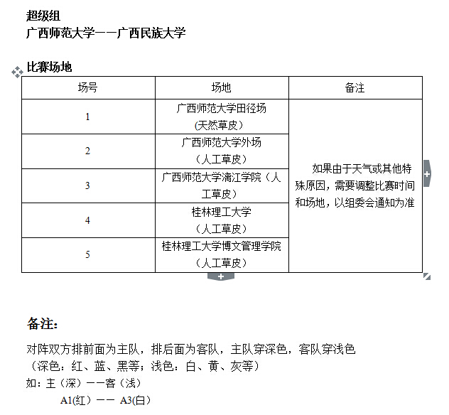 本次联赛参赛单位为全区各普通高等学校,以学校为单位组队参加比赛。比赛分为普通本科组(普通高等本科院校、独立学院)、高职高专组、专业组(有体育专业学生的高校)。本次全区高校51支足球队的1千多名学生运动员参加此次比赛,其中专业组7支,非专业组44支。为了让学校师生及时了解比赛盛况,现将赛事情况预告大家,欢迎学校师生前去观赛。开幕式结朿后,将举行广西师范大学VS广西民族大学的超级组比赛。