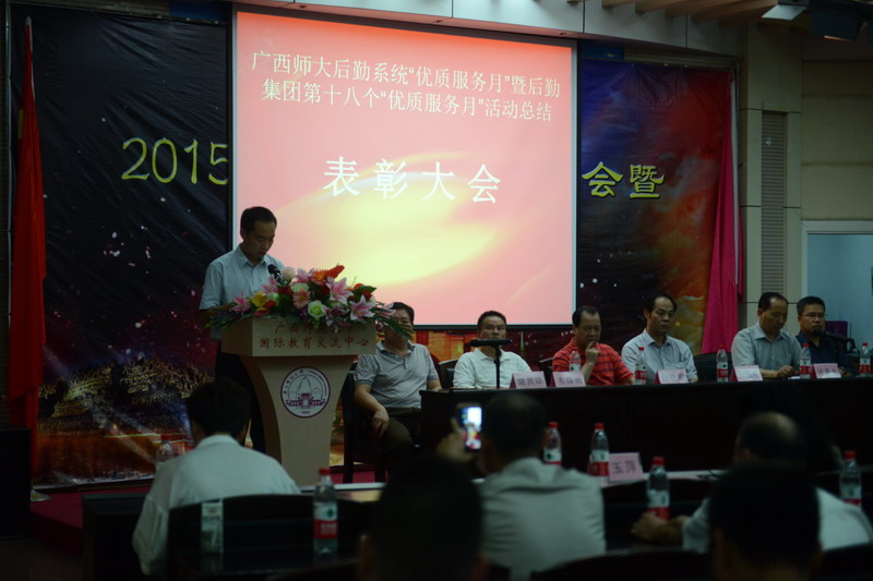 后勤集团负责人代表活动月领导小组作总结发言。他说,在活动月期间,各单位开展各项丰富多彩的优质服务活动,有效激发了全体员工的工作热情和积极性,增强了大家的责任心、责任感和服务意识,提升了我校后勤的整体服务水平和服务质量,为构建“和谐后勤、满意后勤、”注入了强劲的动力。随后,后勤集团负责人还对各单位在活动月中取得的经验、成效进行了归纳梳理,同时,结合实际情况指出了活动过程中存在一些问题和不足。总结结束后,在本次活动中获得“优秀组织奖”的三个单位:物业中心、雁山公寓中心、校园中心等单位还分别做了典型发言。