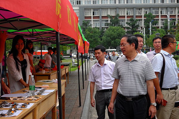 在雁山校区,唐仁郭一行首先走访了各学院新生接待点,详细询问目前的新生报道情况和迎新生的准备工作。“你们接到人了吗?目前新生的到校情况怎么样?本科生在哪注册?研究生在哪注册?”在听取了外国语学院迎新负责人的汇报后,唐仁郭对外国语学院自发设立分流点引导站、宿舍接待站、学院接待站,以方便学生报道注册的做法表示肯定。在新生接待点,唐仁郭一行遇到了与学生一起前来报道的家长,并与家长们进行了亲切交谈。