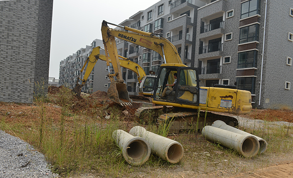 雁山校区教职工住宅(即“相思江·奥林苑”商品房)项目建设工作组(以下简称工作组)成立后,积极与润松公司进行沟通与协调。9月18日上午,雁山校区教职工住宅(即“相思江·奥林苑”商品房)项目 3#—14#的绿化建设、水电工程正式复工。