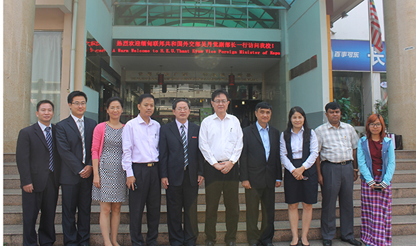 10月24日上午,缅甸联邦共和国外交部吴丹觉副部长一行访问我校。校党委副书记唐仁郭出席欢迎仪式,并在育才校区国际教育交流中心201会议与嘉宾进行了会谈,会谈由国际交流处负责人主持,区外办东盟处领导、缅甸学生代表等参与会谈。