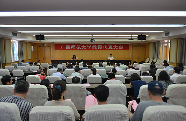 在教授代表大会上,教授代表一致通过了《广西师范大学学术委员会选举办法》,并以无记名投票的方式,在34名委员候选人中选举产生了29名第八届学术委员会委员。从当选委员的结构看,此届学术委员会委员的构成符合《广西师范大学学术委员会章程》关于委员组成结构的要求,注重学院(部)的代表性和公平性,体现了向教学、科研一线倾斜的原则,保证了青年学者在学术委员会中占有一定的比例。