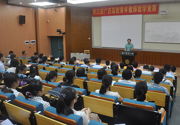 为了深化高等教育综合改革,为进一步提升高校广大青年教师的教学能力与业务水平,7月6日至7日,由广西壮族自治区教育厅和教育工会委员会主办,我校承办的第三届广西高校青年教师教学竞赛在我校举行,本届比赛来自全区35所院校的选手90人参赛,其中人文社会科学组34人,自然科学基础学科组29人,自然科学应用学科组27人。