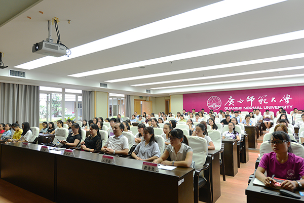 9月8日,为庆祝第32个教师节,宣传优秀教师先进事迹,弘扬人民教师高尚师德,进一步加强师德师风建设,自治区教育厅举办“甘守三尺讲台,争做‘四有’老师”为主题的2016年师德论坛暨优秀教师先进事迹报告会。我校党委副书记旷永青,宣传部、教务处、人事处、附属中学、附属外国语学校、附属幼儿园负责人,以及2016年新入职辅导员,各学院(部)教师、师范生代表80余人在育才校区图书馆一楼报告厅分会场观看了视频报告会。