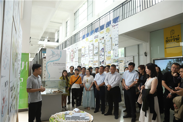 5月22日,广西师范大学设计学院在纯道楼展厅举办了 “龙胜广南侗寨聚落空间复兴”主题成果展。龙胜县委书记周卉、龙胜县人大主任粟宁群、龙胜县民政局局长石怀忠、广南村村支书蒙田及村委代表、广南侗寨古建与民俗文化国际保护中心发起人耶鲁大学建筑学院研究生李紫石、校党委书记邓军、副校长林春逸、校党委常委及宣传部部长黄轩庄、学工部(处)相关负责人及设计学院领导班子成员、各系系主任、环境设计系师生参加了此次活动。