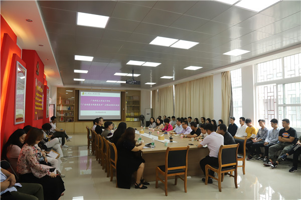 主题成果展开幕式后,在设计学院二楼召开了交流会。交流会主要就此次设计的内容、广南村的未来发展和校地合作的后续工作进行了讨论。龙胜县党委书记周卉提出了龙胜县旅游及新时期侗寨转型的发展与契机,并希望与设计学院展开后续合作。设计学院院长刘涛在发言中提出广南侗族村落如何依托地域优势,结合广西师大设计学院的专业优势,共同探索出一条弘扬民族文化传承和民族设计深度结合的可行性服务路径。设计学院党委负责人也表示对环设系教学实践项目服务地方的支持和肯定。