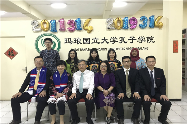 2011年4月,我校与印度尼西亚玛琅国立大学合作共建的孔子学院正式成立。建成至今,孔子学院开设了符合当地需要的各种类型的汉语教学课程,举办了丰富多彩的汉语学习活动,汉语教学点稳步增加,孔子学院影响力正逐渐覆盖印尼东爪哇地区,推动了印尼汉语教学多层次、全方位的发展。依托孔子学院这一平台,我校与20多所印尼高校以及教育科研机构签订了合作协议,开展了卓有成效的合作交流。