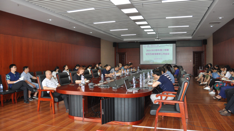 7月2日,我校2018-2019学年研究生教育教学工作会议在雁山校区图书馆第二会议室召开。各学院(部)分管研究生工作负责人、研究生教学秘书及研究生院全体人员共40余人参加会议。研究生院负责人主持会议。
