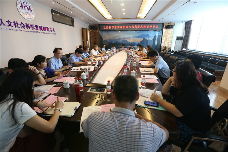 7月5日,由自治区教育厅主办,广西人文社会科学发展研究中心承办的广西高校弘扬科学家精神加强作风和学风建设座谈会在我校广西文科中心多功能会议厅召开。我校苏桂发副校长、自治区教育厅科研处黄青云处长、杨超副处长、自治区教育厅教师工作处霍玉文副处长,以及来自全区10所本科院校的教师管理部门、科技管理和社科管理部门的负责人参加此次座谈会。