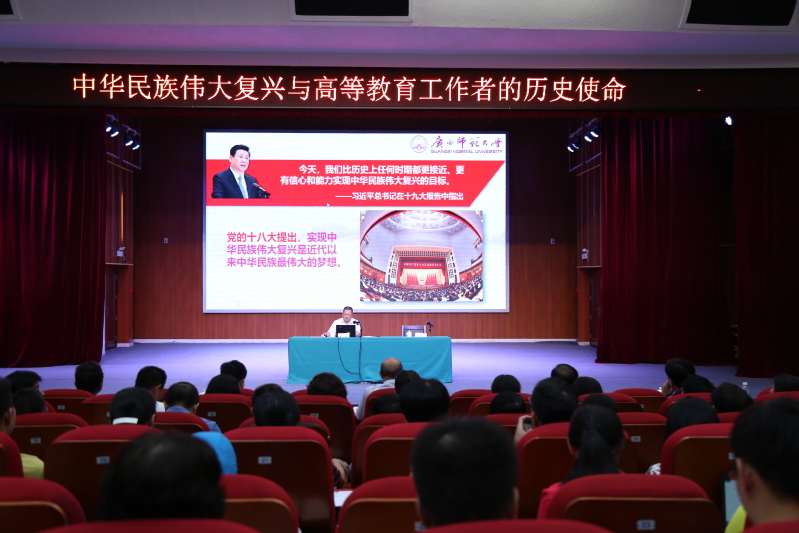 邓军书记为广西艺术学院干部作了题为“中华民族伟大复兴与高等教育工作者的历史使命”的讲座,邓军从新中国70年辉煌成就为中华民族伟大复兴奠定坚实基础、中国特色社会主义是中华民族伟大复兴的光辉旗帜和根本遵循、新时代高等教育工作者的历史使命三方面展开介绍,并重点介绍了我校在新时代高等教育发展的目标和实践探索,讲座内容丰富充实,极具指导性和实践性。当天下午,学校历史文化与旅游学院颜小华教授还为广西艺术学院领导干部作了“中国宗教与国家宗教政策解读—兼谈高校宗教工作”的专题讲座。晚上,双方还进行了体育比赛活动。