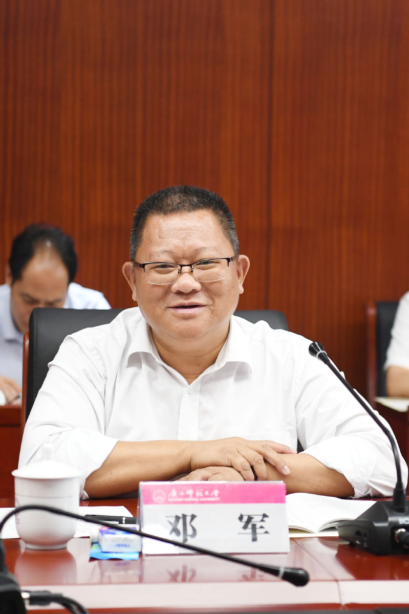 7月9日,自治区人大常委会执法检查组副组长、教科文卫委主任委员叶乐阳,自治区人大教科文卫委副主任委员梁颖,自治区人大常委会委员、教科文卫委副主任委员方芳率检查组到我校开展高等教育法执法检查工作。校领导邓军、旷永青、赵铁、黄文韬、林春逸,校党委常委黄轩庄、林国庆、黄海波率我校相关职能部门、学院负责人及教师代表与检查组座谈,汇报我校执行高等教育法相关工作情况。