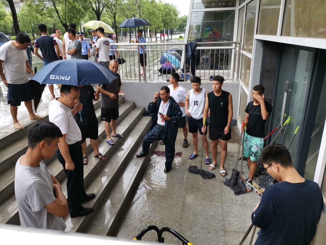 7月13日,持续暴雨影响桂林。受暴雨影响,我校雁山校区出现部分区域积水,育才、王城校区有轻微财产损失。