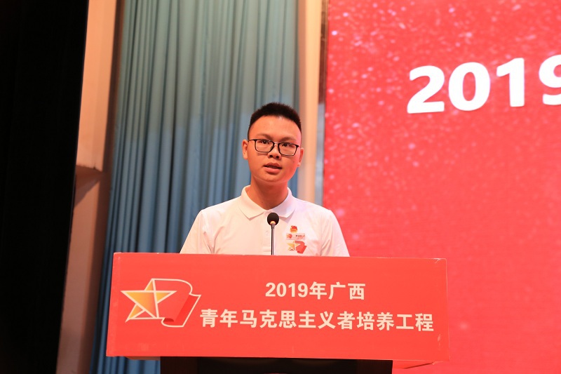 开班仪式上,为2019年广西“青马培养工程”学员代表赠书,2019年广西“青马培养工程”学员代表、广西大学廖宗钰同学发言。