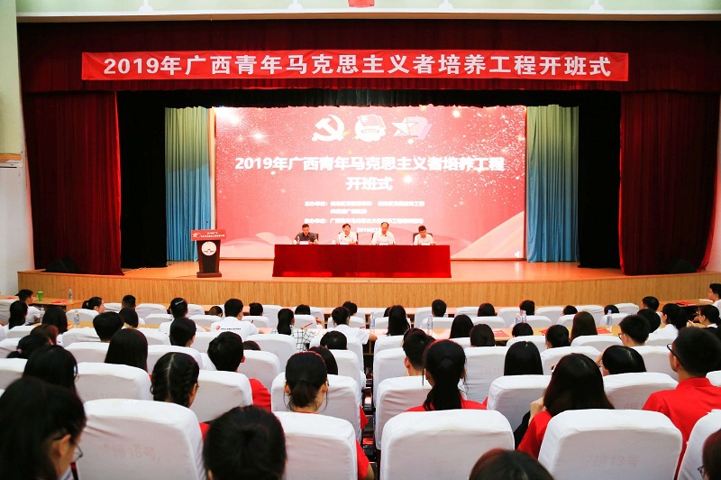 7月15日上午,由自治区党委宣传部、自治区党委教育工委、共青团广西区委主办和广西青年马克思主义者培养工程培训基地(广西师范大学)承办的2019年广西青年马克思主义者培养工程开班式在我校育才校区田家炳教育书院报告厅举行。共青团广西区委副书记郑胜景、校党委副书记旷永青、自治区高校团工委副书记陈小波出席开班仪式。共青团广西区委学校部、少年部部长钟声宇主持开班仪式。2019年广西青年马克思主义者培养工程学员、广西师范大学第十二期青年马克思主义者培养工程学员近200人参加了开班仪式。