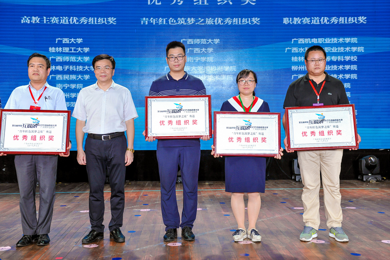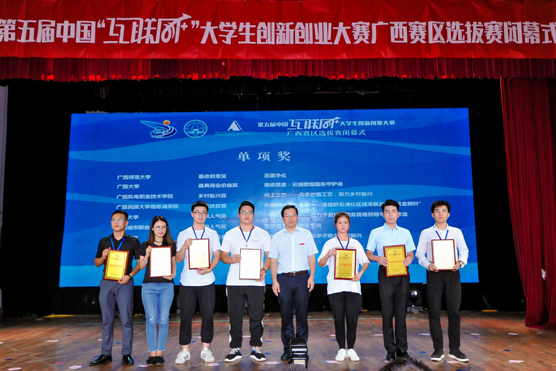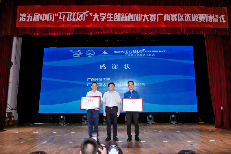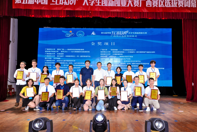 自春意盎然的四月启动,到生机勃勃的七月收官,由自治区教育厅、自治区党委统战部、自治区党委网信办、自治区工业和信息化厅、自治区人力资源和社会保障厅、自治区生态环境厅、自治区农业农村厅、自治区市场监督管理局、广西科学院、共青团广西区委主办,广西师范大学承办,广西师范大学出版社集团协办的第五届中国“互联网+”大学生创新创业大赛广西赛区选拔赛(以下简称区赛)在王城校区国学堂举行闭幕式暨颁奖仪式,为本届区赛画上完美句号。