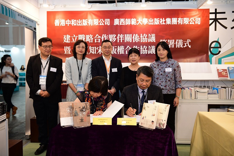 17日下午,在出版社集团与香港中和出版公司举行战略合作签约仪式上,吕洁一行出席活动并见证双方签署《战略合作伙伴关系协议》和《<知宋>版权合作协定》。