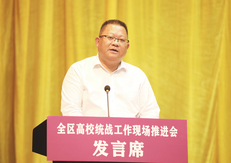 自治区党委教育工委书记、教育厅厅长唐咸仅在会上讲话。唐咸仅表示,这次会议凝聚了共识、明确了方向、提振了信心、取得了实实在在的成效,就贯彻好落实好这次会议精神,推进高校统战工作提出了意见:一要充分认识高校统战工作的重要地位和作用,牢牢把握高校统战工作必须遵循的重要原则和方法,要准确把握当前我区新时代高校统战工作面临的新任务,新要求,切实把思想和行动统一到中央和自治区党委的决策部署上来;二要突出重点,强化主体责任,加强统筹谋划,推进统战工作重心下移,加强队伍建设,狠抓各项工作落实,扎实推动高校各领域统战工作取得新进展;三要努力开创我区高校统战工作新局面。