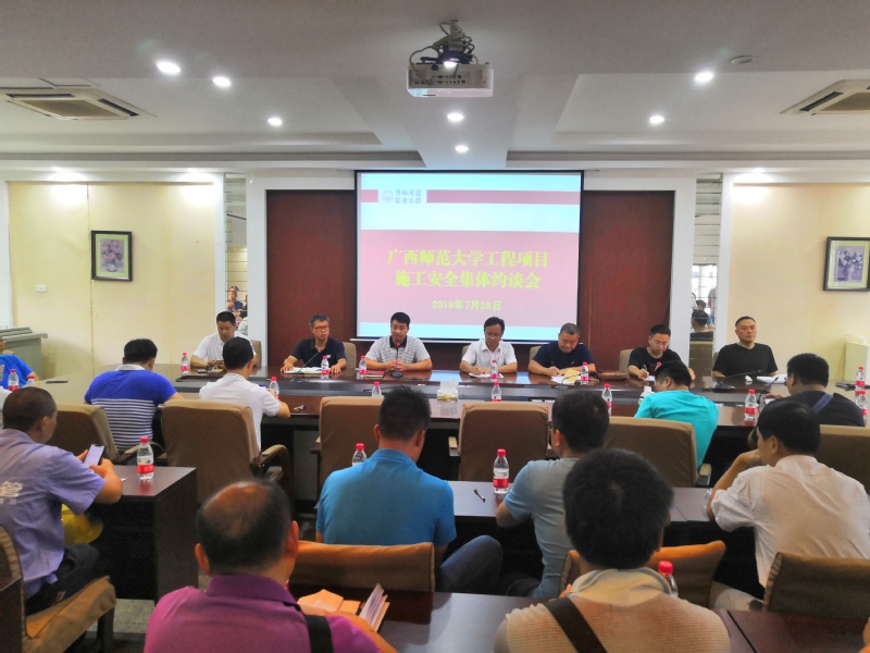 为进一步加强校园工程项目施工安全,根据学校工作安排,7月28日,基建处、后勤保障处负责人组织所有在建项目参建单位项目负责人分别在育才校区和雁山校区召开学校工程项目施工安全集体约谈会,校党委常委、副校长林春逸参加会议并讲话。