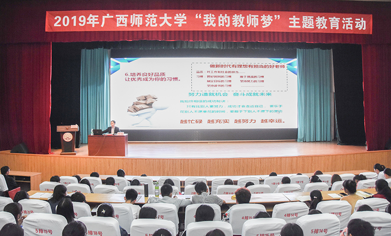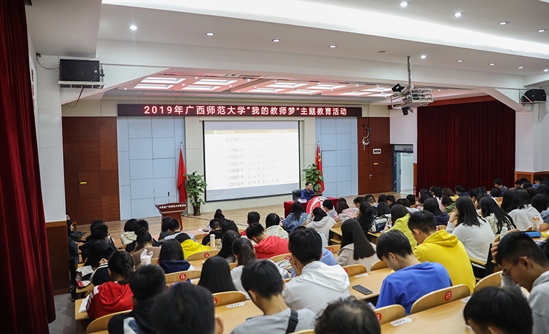10月17日晚,由自治区教育厅主办,广西师范大学承办的2019年“我的教师梦”主题教育活动专题讲座在我校育才校区、雁山校区同时开展。广西理工职业技术学校校长助理、艺术设计学院院长陈良,钦州市第二中学校长刘世伟,柳州市文惠小学教育集团总校长陈意曼分别作主题报告,我校学生聆听了此次报告会。