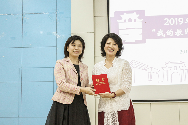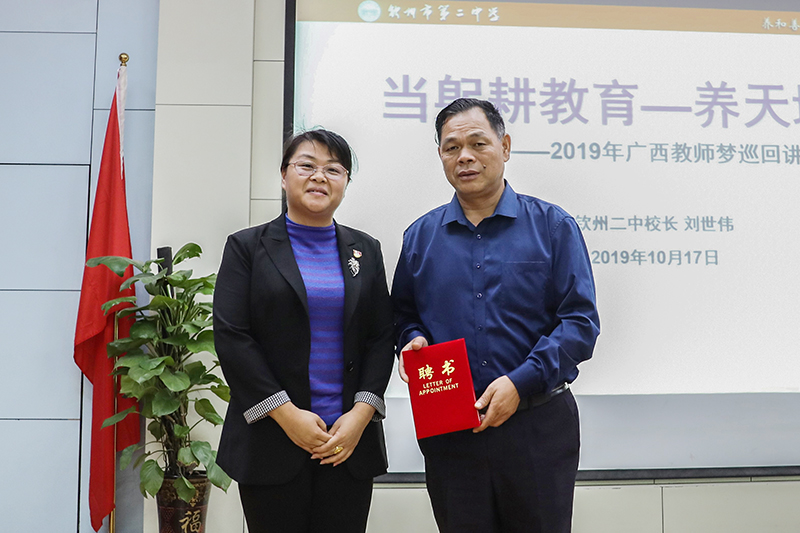 为广西柳州市文惠小学教育集团总校长陈意曼老师颁发聘书