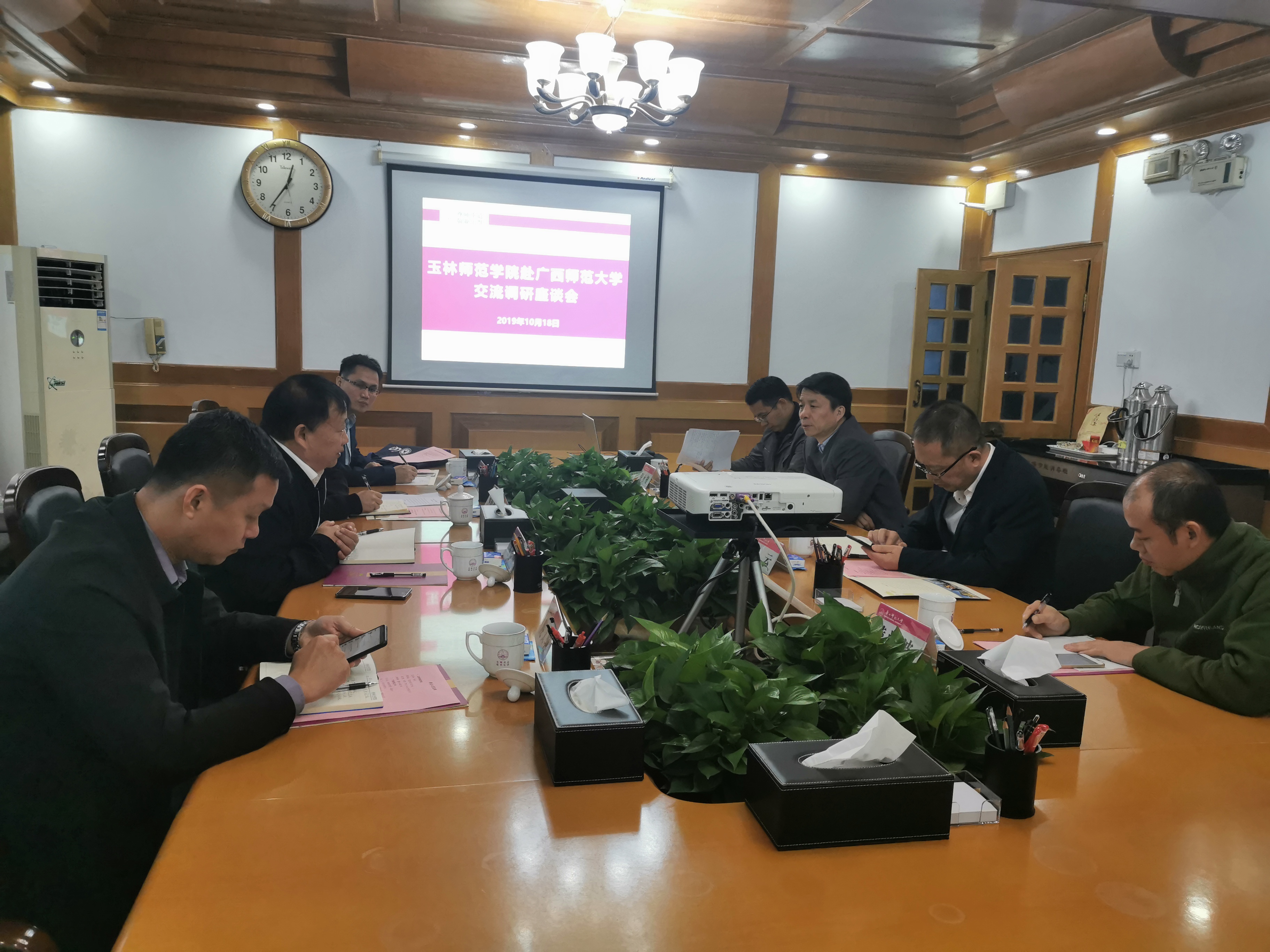 10月18日下午,玉林师范学院王卓华校长率该校党委(院长)办公室、发展规划处、教务处等部门相关负责人来校交流调研。我校党委常委、副校长孙杰远在育才校区校办楼三楼会议室热情接待了来访客人,学校对口部门相关负责人参加了座谈交流。