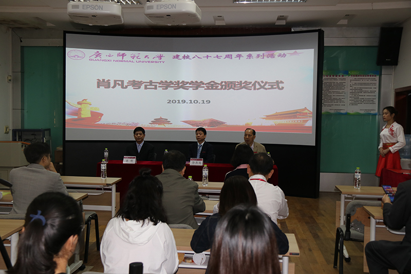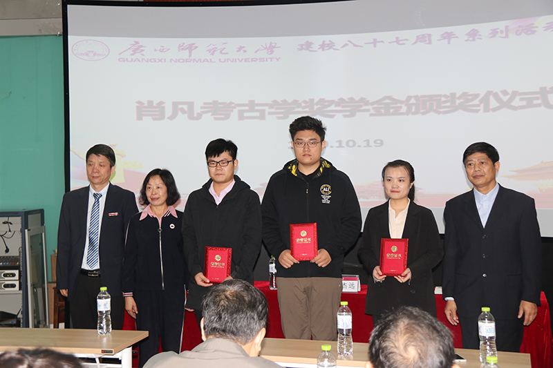在肖凡考古学奖学金的颁奖仪式上,孙杰远副校长指出,肖凡考古学奖学金是我校极少数以学生命名的奖学金之一,具有特殊而重要的意义。肖凡父母在肖凡不幸过世之后,将其收藏的大量文物和平生积蓄捐给我校,用于教学科研和资助优秀学生,这份大爱,广西师大将永远铭记在心。