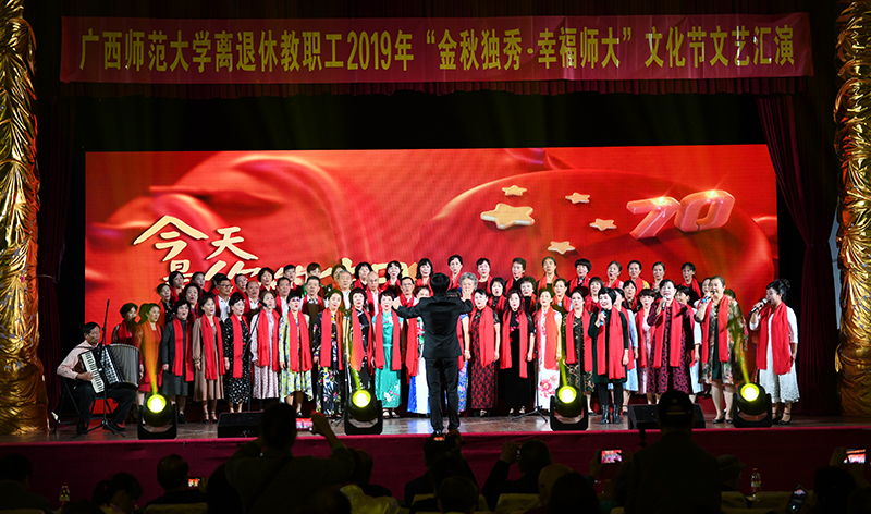 为庆祝新中国成立70周年、学校建校87周年,10月23日上午9点,学校离退休教职工2019年“金秋独秀·幸福师大”文化节闭幕式在王城大礼堂隆重举行。校党委书记邓军、校党委副书记旷永青、校党委常委纪委书记莫坷出席了活动。党办、校办、保卫处相关负责人,以及离退处全体干部,近700位老同志共同观看了文艺汇演。历时一个多月的文化艺术节画上了完美句号。