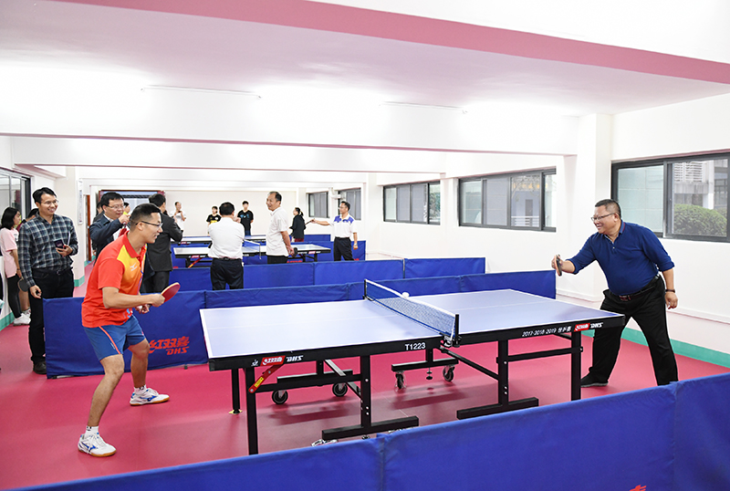 继10月19日启动学校2019年体育文化节暨青春舞大赛之后, 10月24日,雁山校区教职工运动室正式启用。当天,校领导与师生们共同交流球技,开展互动教学,现场气氛热烈。大家在积极进行体育锻炼的同时,也愉悦了身心。