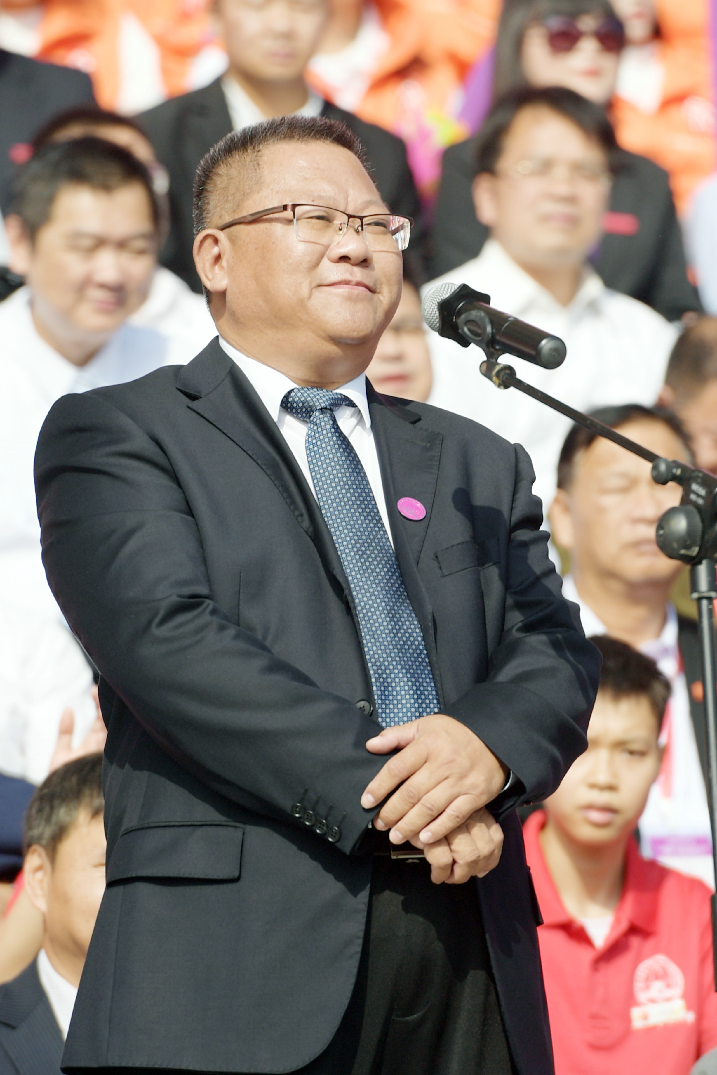 校党委副书记、校长贺祖斌致辞。贺祖斌在致辞中回顾了我校第十一次党代会以来,体育事业蓬勃发展的良好态势和全校师生积极参加体育运动、锻炼健康体魄的良好风气。
