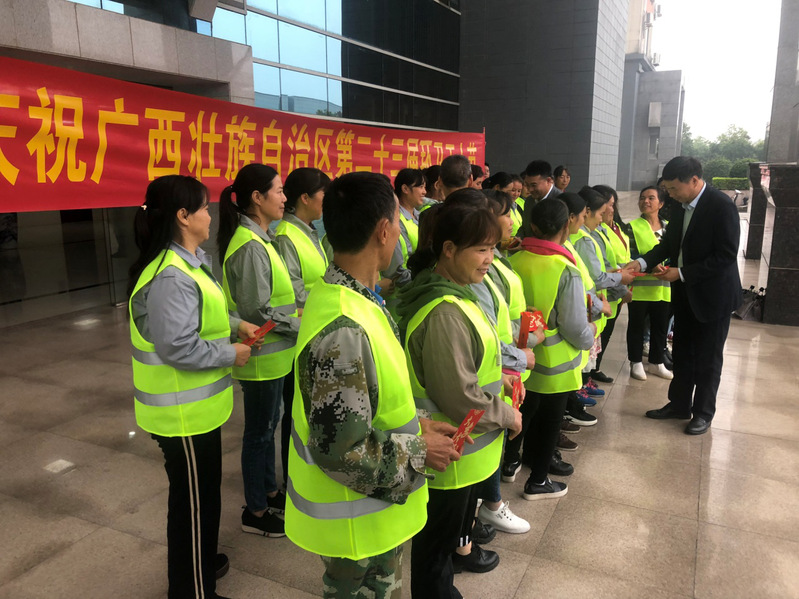 10月26日是广西壮族自治区第二十三届“环卫工人节”,10月25日上午,后勤保障处/后勤服务集团环境绿化服务中心组织环卫工人举行了庆祝活动,学校副校长黄文韬,后勤保障处/后勤服务集团党政主要负责人等领导到活动现场与环卫工人共同过节,并对后勤环卫工人进行了慰问。