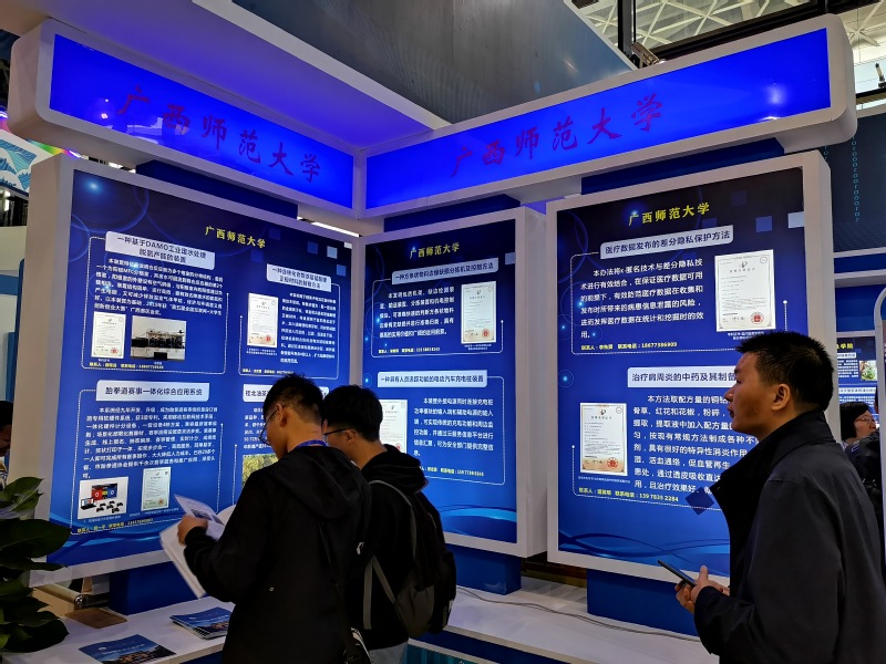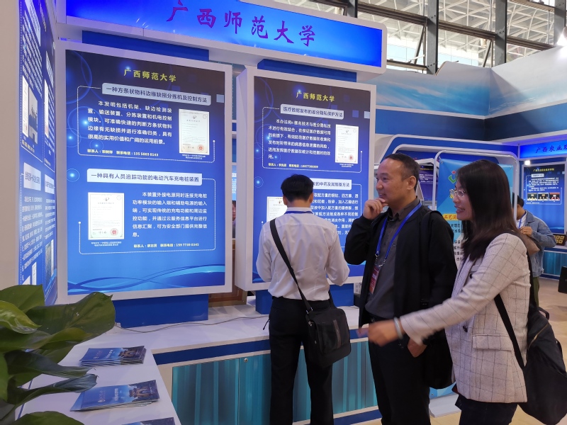 我校的“一种基于DAMO工业废水处理脱氮产能的装置”、“一种含铁化合物涂层锰酸锂正极材料的制备方法”、“跆拳道赛事一体化综合应用系统”等8项专利成果,在广西发明展的高等院校知识产权成果展区进行了展览,专利成果的创新性和应用价值获得社会各界人士的广泛认可;展览会上我校科技处相关人员还积极发放《广西师范大学科技服务地方宣传手册》。
