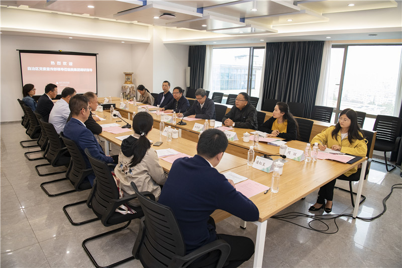 11月6日上午,自治区党委宣传部副部长宋震寰到出版社集团开展国有文化企业发展和国有文化资产监管情况调研。桂林市人大常委会副主任赵德明、自治区党委宣传部文化体制改革和发展处副处长李晓健、桂林市党委宣传部常务副部长时曦、桂林市国资委副主任蓝誉国等有关部门负责同志一同参加调研。