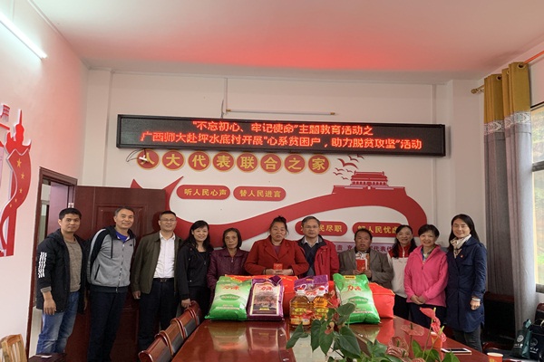 为深入学习贯彻习近平总书记在“不忘初心、牢记使命”主题教育工作会议精神,助理脱贫攻坚,用实际行动践行党的初心和使命。2019年11月13日,苏桂发副校长带领科技处、社科处和国际文化教育学院共30余名党员赴资源县梅溪乡坪水底村开展“不忘初心,牢记使命”主题教育活动之“心系贫困户,助力脱贫攻坚”的主题教育实践活动。