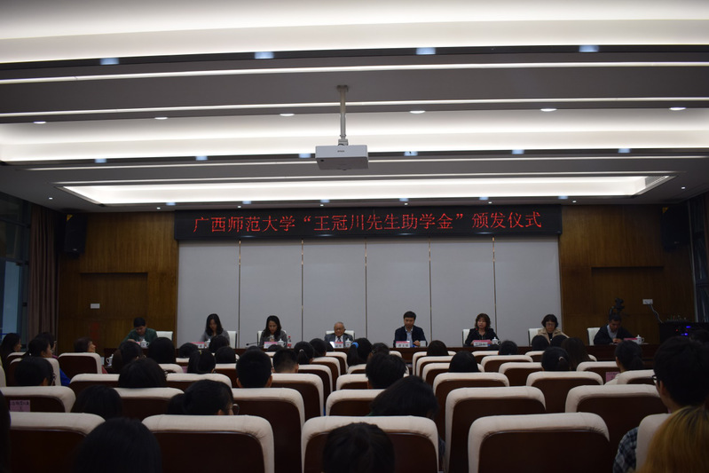 11月13日上午,我校在雁山校区起文楼第五会议室举行了2018-2019学年“王冠川先生助学金”颁发仪式。王冠川、钟敏贞夫妇,校党委常委、副校长黄文韬、宣传部、学工部(处)、校团委、教务处、财务处、教育发展基金会等单位负责人,各学院(部)资助工作老师以及本届、往届受助学生共120余人参加了此次颁奖仪式。仪式由学工部(处)负责人主持。