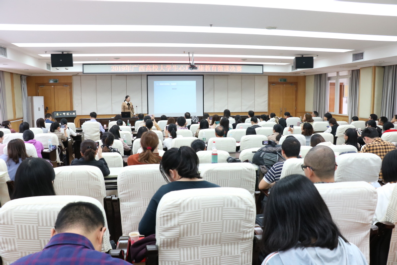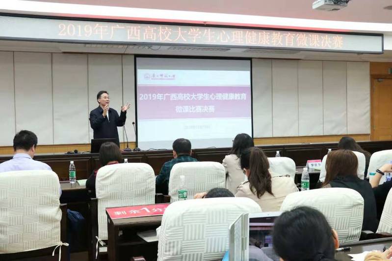 11月16日,由广西教育厅主办,广西大学生心理健康教育研究基地(广西师范大学)承办的2019年广西高校大学生心理健康教育微课比赛决赛在我校举行。校党委副书记旷永青出席并致辞。